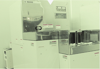 電子掃描顯微鏡,用于曝光蝕刻后微細線條線寬的檢查,具有自動圖形識別、直徑檢測、多項目自動分析操作的技術(shù)功能,遠高于光學顯微鏡的放大倍數(shù)。
